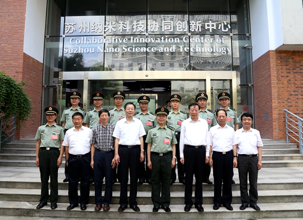 9月7日,南京军区机关干部赴我校独墅湖校区的苏州纳米科技协同创新中心考察。南京军区司令员蔡英挺上将一行在省委书记罗志军,省委副书记、省长李学勇,省委副书记、苏州市委书记石泰峰,苏州市委副书记、市长周乃翔,我校党委书记王卓君、校长朱秀林等领导陪同下进行了考察。
