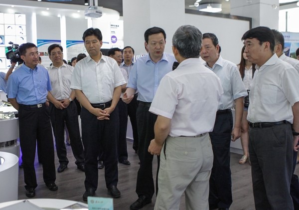 周乃翔、曲福田一行首先来到苏州纳米科技协同创新中心展厅,详细了解我校在纳米技术研究与产业化应用方面取得的新成果,中心主任李述汤院士、学院副院长廖良生教授等向市委领导介绍了苏州纳米科技协同创新中心的重大任务进展,包括了国内面积最大的高效率长寿命有机OLED照明面板、超大尺寸可柔性化触控屏幕、微纳机电智能机器人、低成本高效率的光解水纳米催化剂、磁悬浮离心式人工心脏、新型环保吸附材料等,市委领导详细了解了这些科研项目的进展及产业化情况,鼓励科研人员瞄准技术前沿、产业需求,加大创新研发力度,加速成果转化步伐。