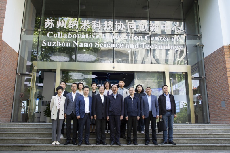 4月24日上午,江苏省侨联二级巡视员李发勇一行来纳米科技协同创新中心调研交流。省纪委监委派驻省委统战部纪检监察组三级调研员孙爱华,镇江市侨联党组书记、主席王永新,省侨联联谊联络部部长刘芳,市侨联党组书记、主席李文辉,市侨联基层建设部部长唐建东等参加调研。苏州大学党委常委、统战部部长黄志斌,国际合作交流处处长兼港澳台办公室主任李彦光,侨联副主席、国际合作交流处副处长资虹,协同中心副主任吴鹏,纳米学院党委副书记、副院长袁建宇陪同调研。