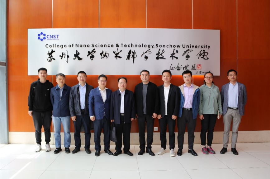 4月25日,省工信厅材料工业处副处长贾楠一行来纳米科技协同创新中心(以下简称“协同中心”)调研。省工信厅材料工业处干部刘镕瑞、市工信局材料工业处处长胡旭明、市工信局材料工业处四级主任科员高小山陪同调研。苏州大学纳米学院党委书记、协同中心副主任吴鹏、苏州大学产业技术研究院副院长田天、纳米学院副院长孙宝全、纳米学院副书记兼副院长袁建宇、沙钢钢铁学院金属材料工程系教授夏志新、材料与化学化工学部科研办主任杨凤珠等参加调研。